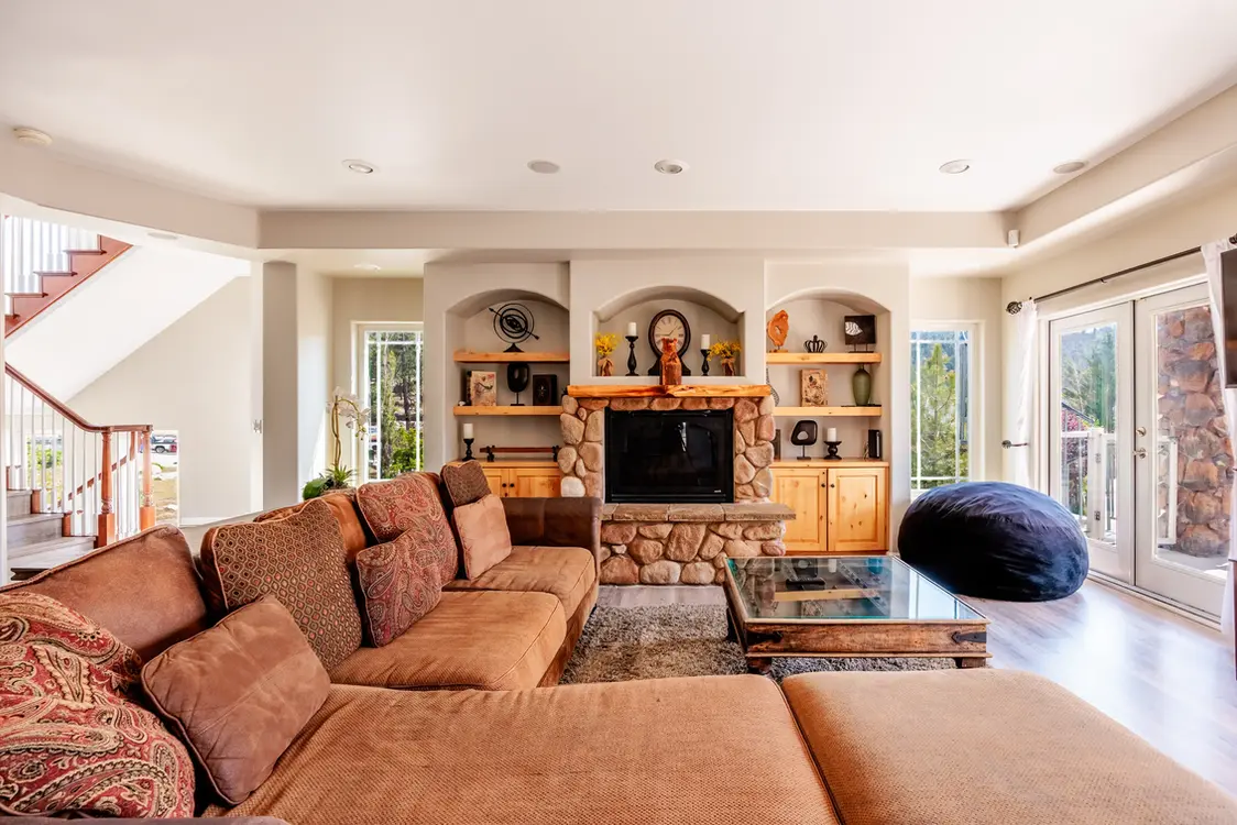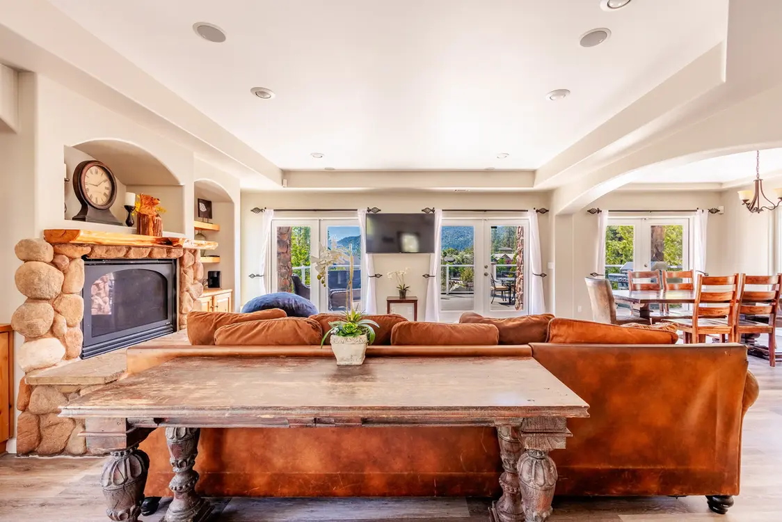 The open-concept living room is great for gathering and relaxing. With big windows, comfy seating, and space to spread out, it’s the perfect place for game night, conversation, or winding down after a day outdoors.