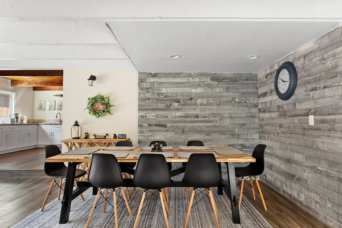 The gourmet kitchen is fully equipped with stainless steel appliances, ample counter space, and everything you need to prep home-cooked meals. Whether you're whipping up breakfast or a fireside dinner, this space brings everyone together.