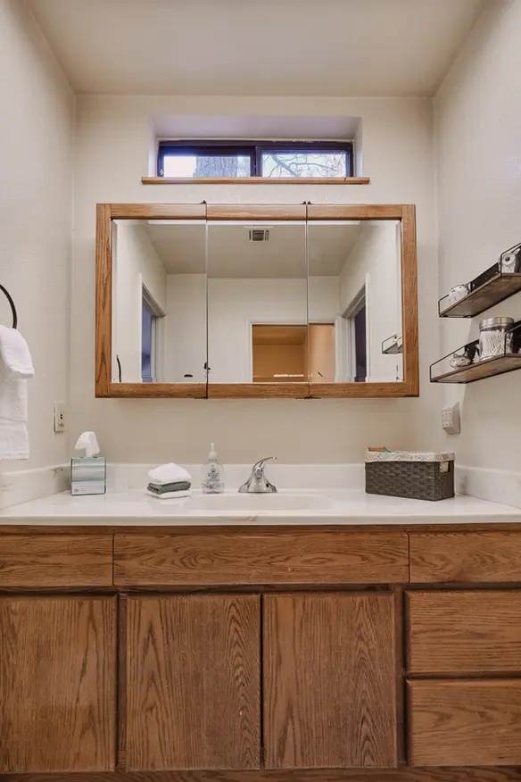 Two thoughtfully designed full bathrooms offer convenience and comfort, catering to the needs of all guests. Step into these modern sanctuaries, where plush towels and fresh amenities enhance your relaxation, enveloping you in pampering throughout your stay. Whether you're preparing for a day of adventure or winding down after explorations, these meticulously adorned bathrooms ensure every moment within them is marked by indulgence and comfort. Exiting, you're greeted with a sense of freshness, ready to embrace the day or night with renewed energy.