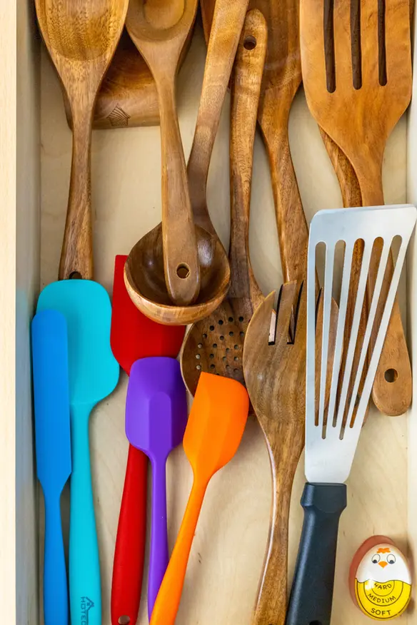 The kitchen is complete with a full-sized refrigerator, an oven and stove, a Keurig coffee maker (+huge coffee selection), and all the utensils you need to cook up a storm. You can store your food and supplies in the cabinets and drawers and drink any of the tea and coffee we’ve provided. Our island seats four people so you can hang out while cooking, and when you’re ready for some good food, you can all sit to eat at the four-seater dining table in the corner.