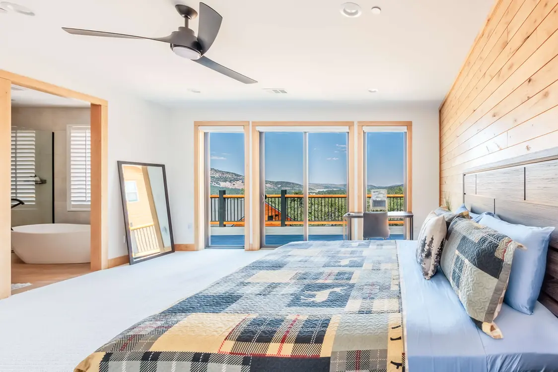 Enjoy breathtaking panoramic views from your private balcony, perfect for morning coffee or evening relaxation. Step outside to savor magnificent mountain views from the private deck or relax in the outdoor spa. The spacious outdoor area is perfect for entertaining, with ample seating for al fresco dining, board games, and stargazing under clear skies. Surrounded by nature and equipped with home comforts, this space is designed to maximize your mountain getaway experience.